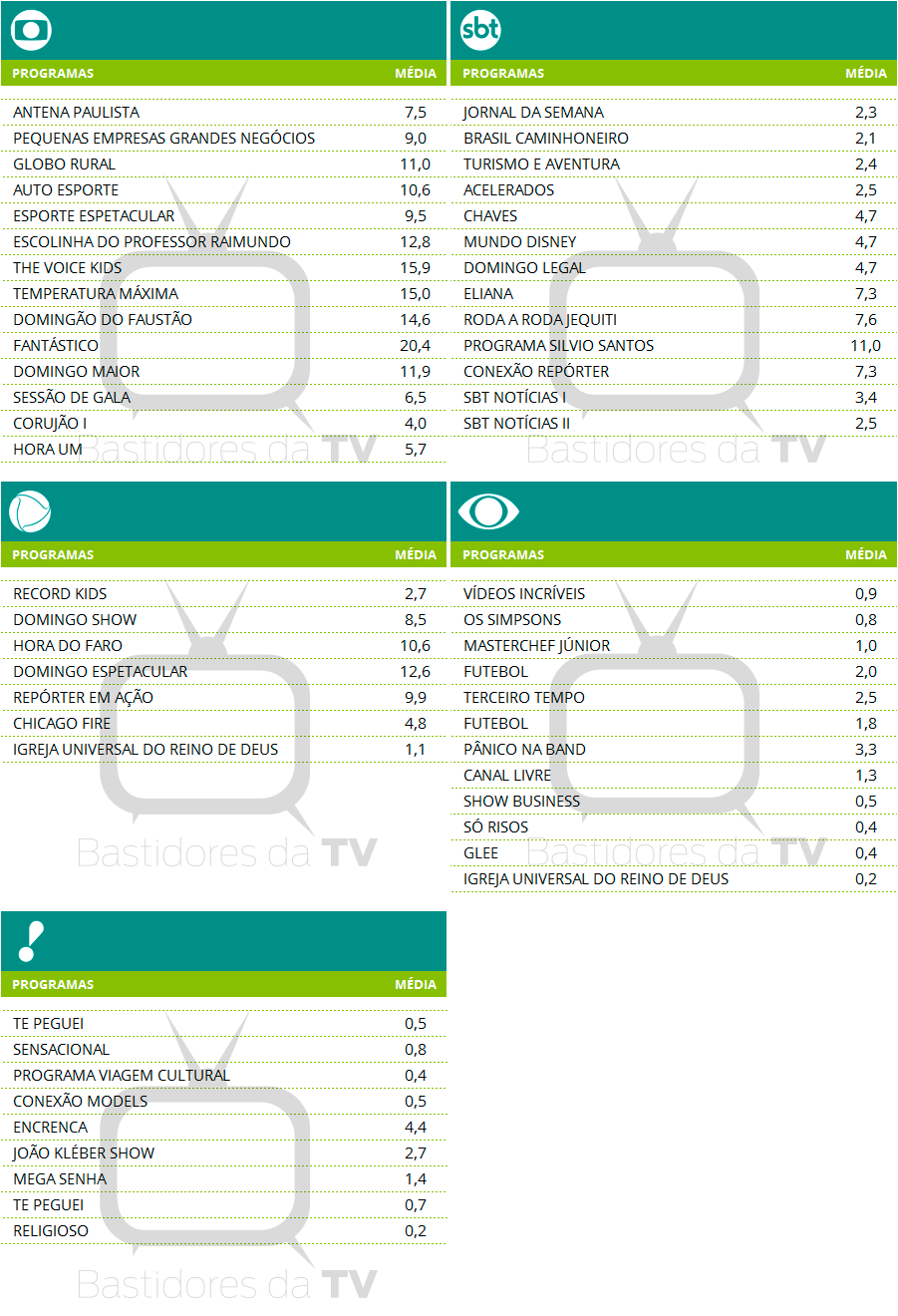 Audiências consolidadas de domingo (08/01)
