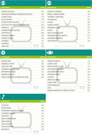 Audiências consolidadas de domingo (13/11)