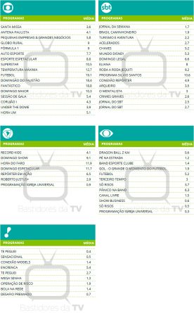 Audiências consolidadas de domingo (1º/05)