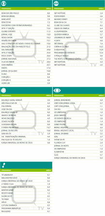 São Paulo: Audiências consolidadas de domingo (16/11/2025)