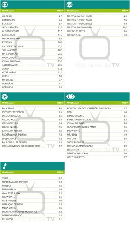 Audiências consolidadas de sábado (05/11)