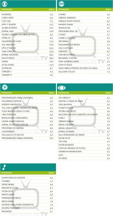 Audiências consolidadas de sábado (10/09)