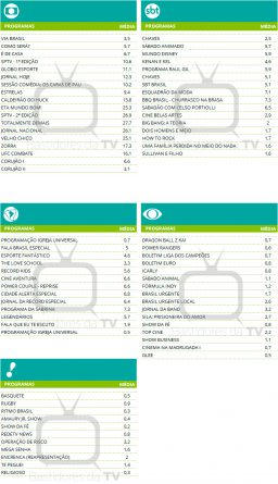Audiências consolidadas de sábado (14/05)