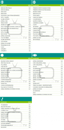 São Paulo: Audiências consolidadas de domingo (09/11/2025)