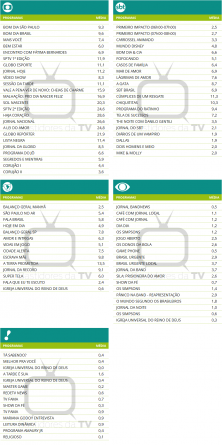 São Paulo: Audiências consolidadas de segunda-feira (10/11/2025)