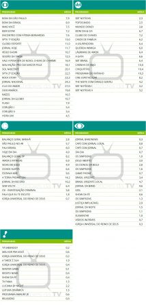 São Paulo: Audiências consolidadas de domingo (09/11/2025)