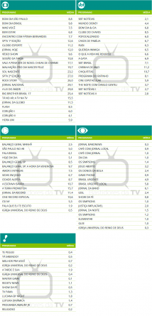São Paulo: Audiências consolidadas de domingo (09/11/2025)