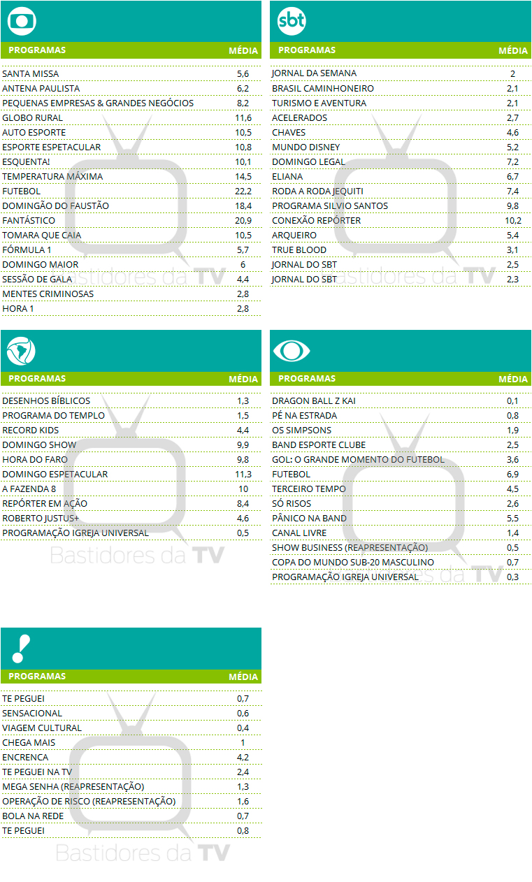 São Paulo: Audiências consolidadas de domingo (09/11/2025)