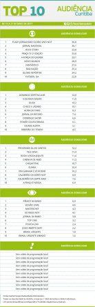 Curitiba: confira as audiências do Top 10 de 15 a 21 de maio Alex Klein 24 de maio de 2017 Compartilhar: