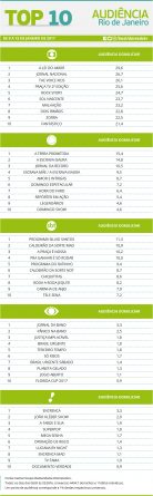 Rio de Janeiro: confira as audiências do Top 10 de 9 a 15 de janeiro Alex Klein 17 de janeiro de 2017 Compartilhar: