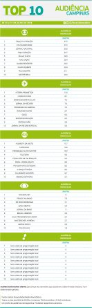Top 10: as maiores audiências das emissoras em Campinas (25 a 31/07) Alex Klein 2 de agosto de 2016 Compartilhar: