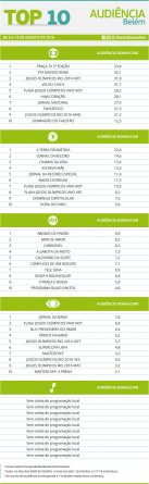 Top 10: as maiores audiências em Belém entre os dias 8 e 14 de agosto Alex Klein 16 de agosto de 2016 Compartilhar: