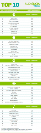 Top 10: as maiores audiências em Vitória entre os dias 21 e 27 de novembro Alex Klein 29 de novembro de 2016 Compartilhar:
