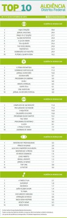 Top 10: as maiores audiências no Distrito Federal entre os dias 17 e 23 de outubro Alex Klein 26 de outubro de 2016 Compartilhar: