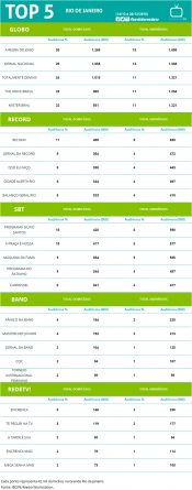 Top 5: os programas mais assistidos no Rio de Janeiro de 14 a 20 de dezembro Alex Klein 4 de janeiro de 2016 Compartilhar: