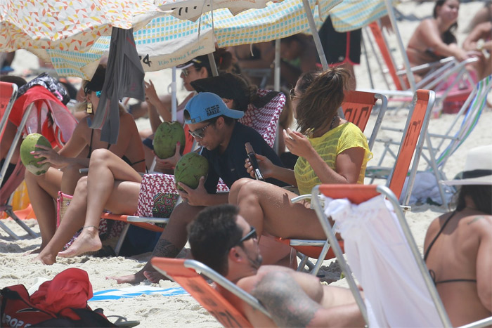 Thammy Miranda apostou em uma blusa de manga comprida bem justinha para poder aproveitar a praia da Barra da Tijuca, zona oeste do Rio de Janeiro, na tarde desta quinta-feira (08/01), ao lado de sua namorada, Andressa Ferreira. De sunga, ela chegou à praia de mãos dadas com sua amada, tomou uma água de coco e já se jogou no mar carioca.