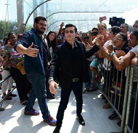 Sem noção nenhuma, Dudu tirou selfies com populares, deu autógrafos e ainda fez pose de celebridade na porta de festa.