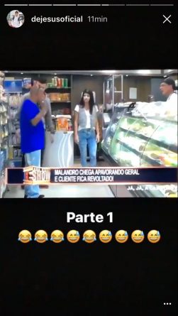 Na noite desta quinta-feira (23), no Instagram, o jogador publicou três vídeos assistindo a uma pegadinha do programa “João Kléber Show”, em que um “malandro” arruma confusão em um mercado. A atração é uma das maiores audiências da RedeTV! e vai ao ar aos domingos, às 23h.