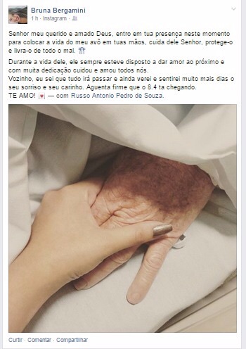 Russo sentiu fortes câimbras nas mãos, na última sexta (26) e foi levado ao hospital em coma induzido. Pelo Facebook, sua neta, Bruna Bergamini, informou o acontecido e deixou uma mensagem para o avô. “Venho por meio deste avisar que o RUSSO encontra-se internado devido a um AVC. Estar em coma induzido e respira com ajuda de aparelhos. Peço que orem por ele.. Pois o estado é GRAVE”, relatou Bruna.