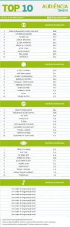 Belém: confira as audiências do Top 10 de 15 a 21 de maio Alex Klein 24 de maio de 2017 Compartilhar: