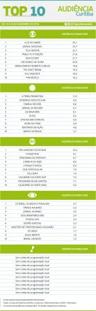 Curitiba: confira as audiências do Top 10 de 19 a 25 de dezembro Alex Klein 29 de dezembro de 2016 Compartilhar: