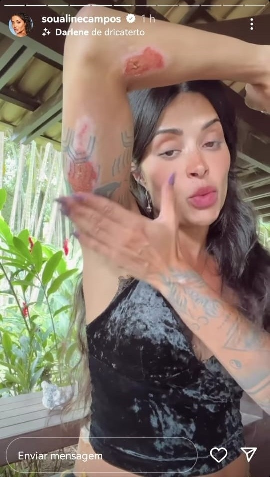 Em suas redes sociais, Aline mostrou os ferimentos.