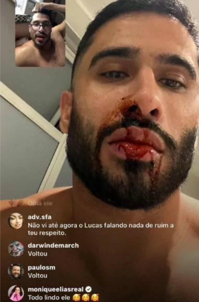 Ainda na live, Laéllyo, mostrando estar muito abalado, compartilhou fotos em que aparece ensanguentado.