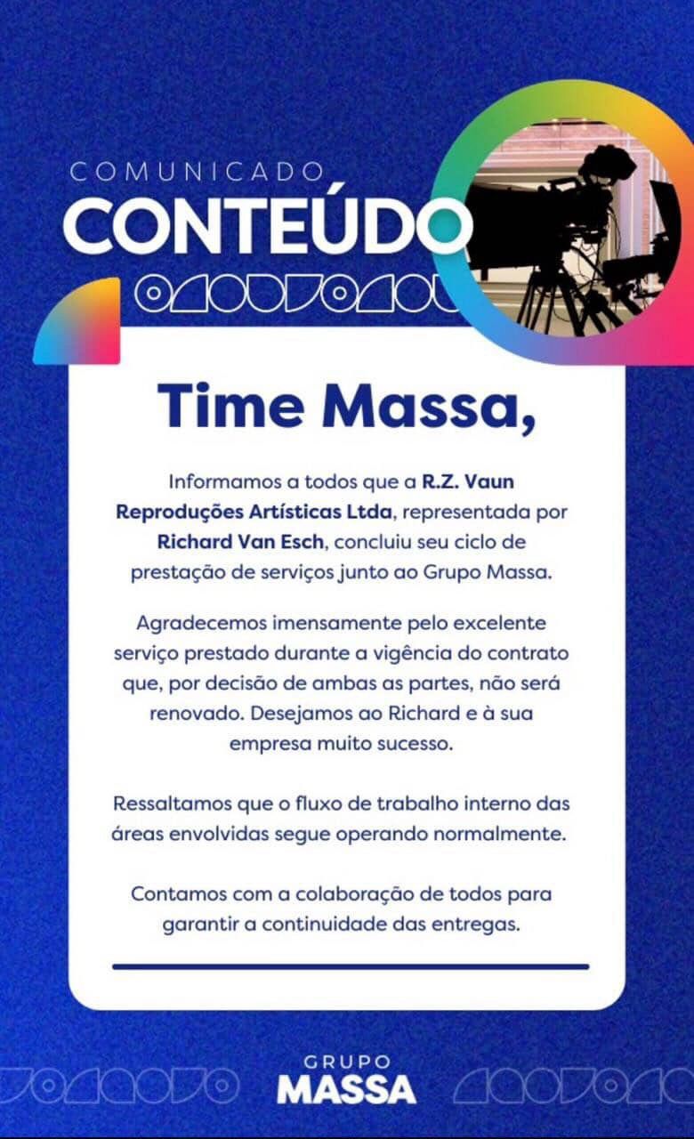 Veja o comunicado da Rede Massa: